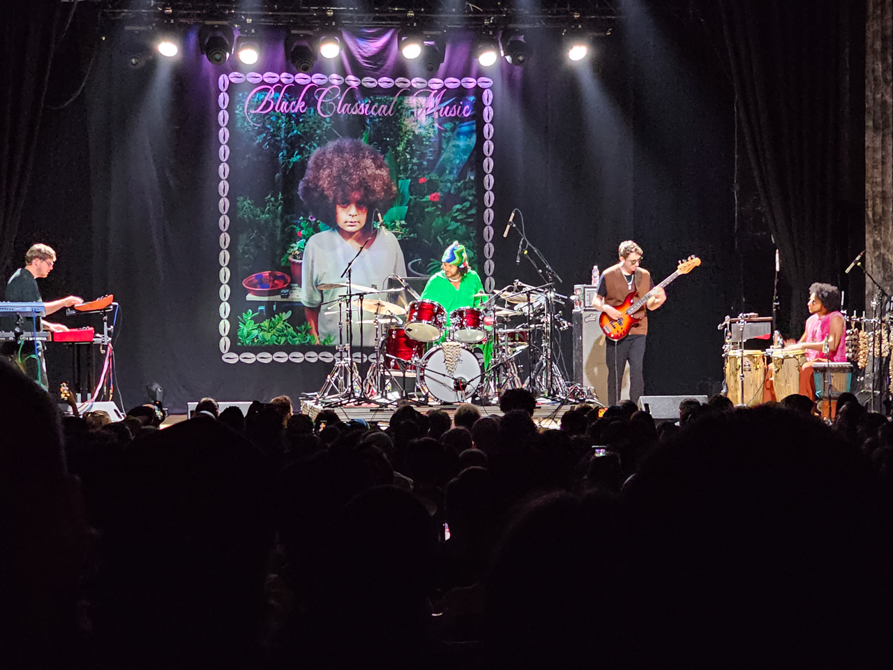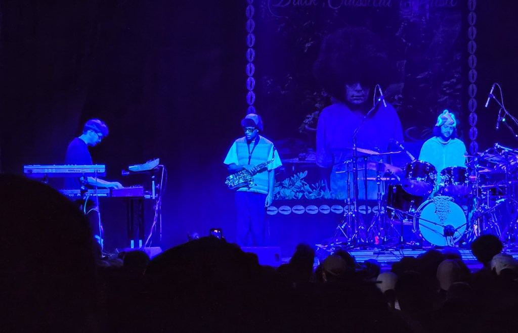 The show did not start on time, yet it was not a bad wait, allowing for people watching and listening to the music played over the venue’s sound system. When the band came on stage, there was no emcee, no fanfare and all heat in the opening song, Black Classical Music. The band includes Elijah Fox on keyboards, Malik Venner on saxophone, Rocco Palladino on bass and Alexander Bourt on percussion.