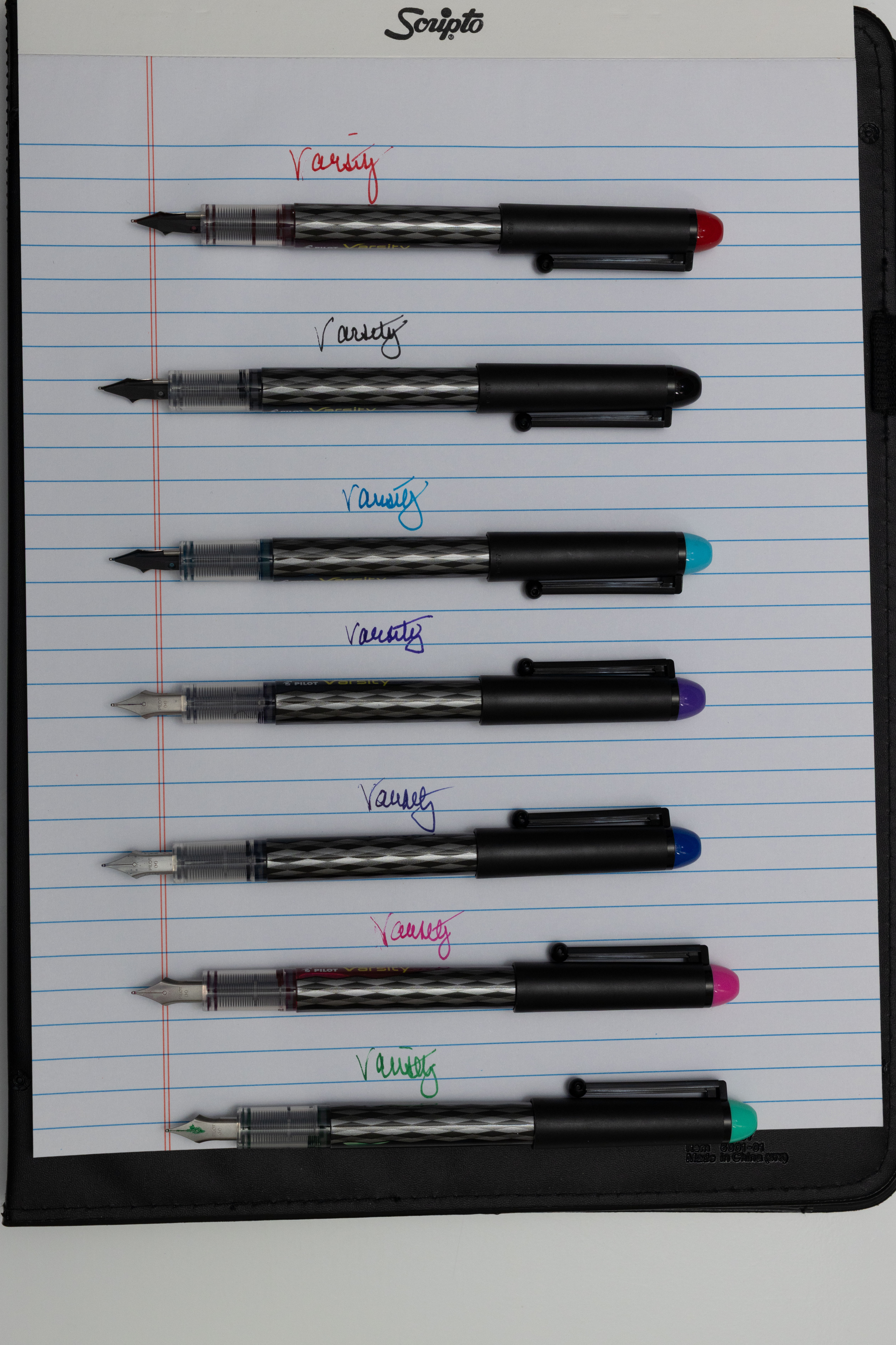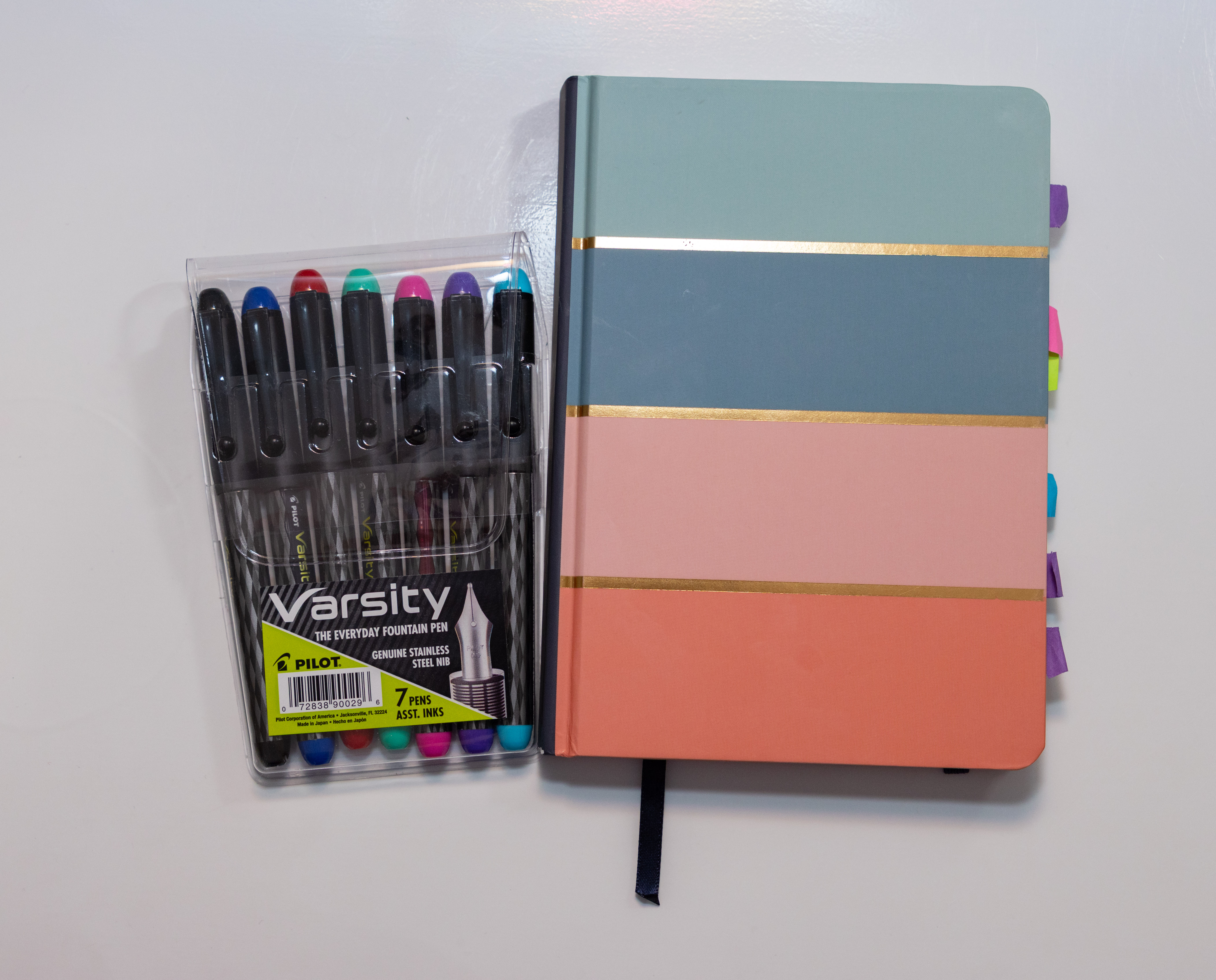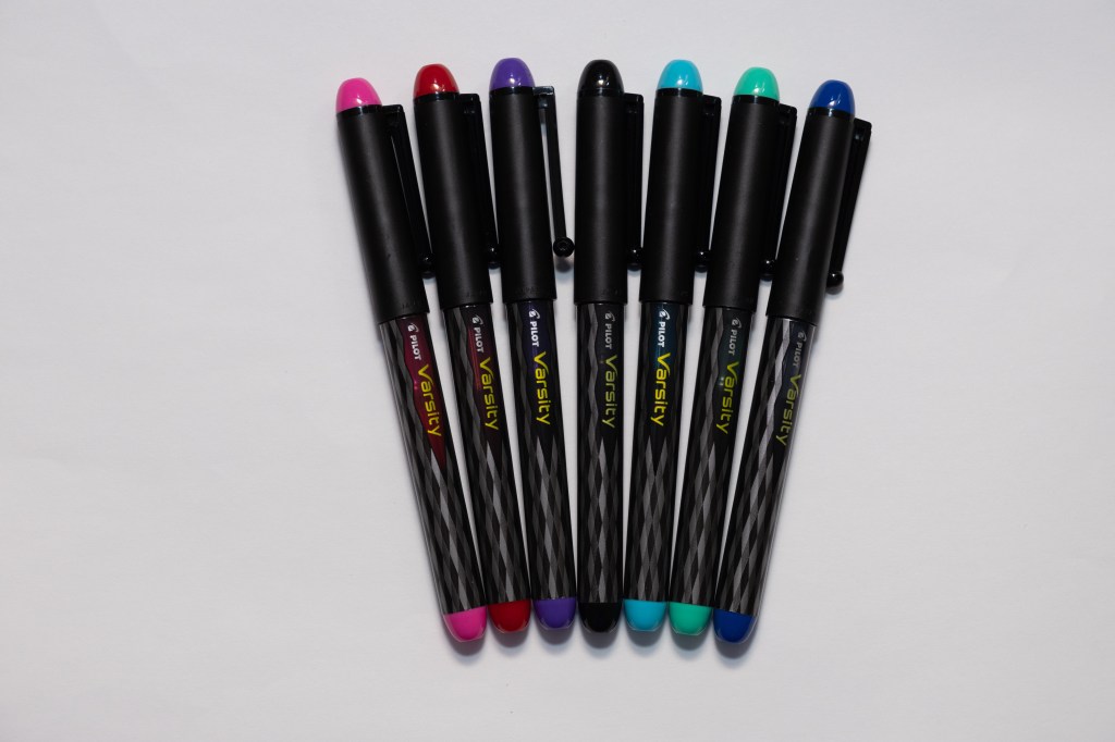 The Pilot Varsity Everyday Fountain pen lasts and is great for those who have some hesitancy about the fountain style.